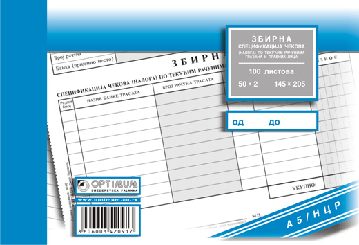 SPECIFIKACIJA ČEKOVA A5 NCR ZBIRNA 9240